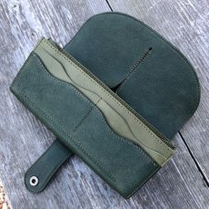 表とコインケース部分及びカード入れ最下部にジビエレザーを使用。裏面には豚革のスウェードを張り高級感満載です。カード入れ部分には姫路産のヌメ革を使用しています。柔らかく使いやすい仕上がりとなっております。