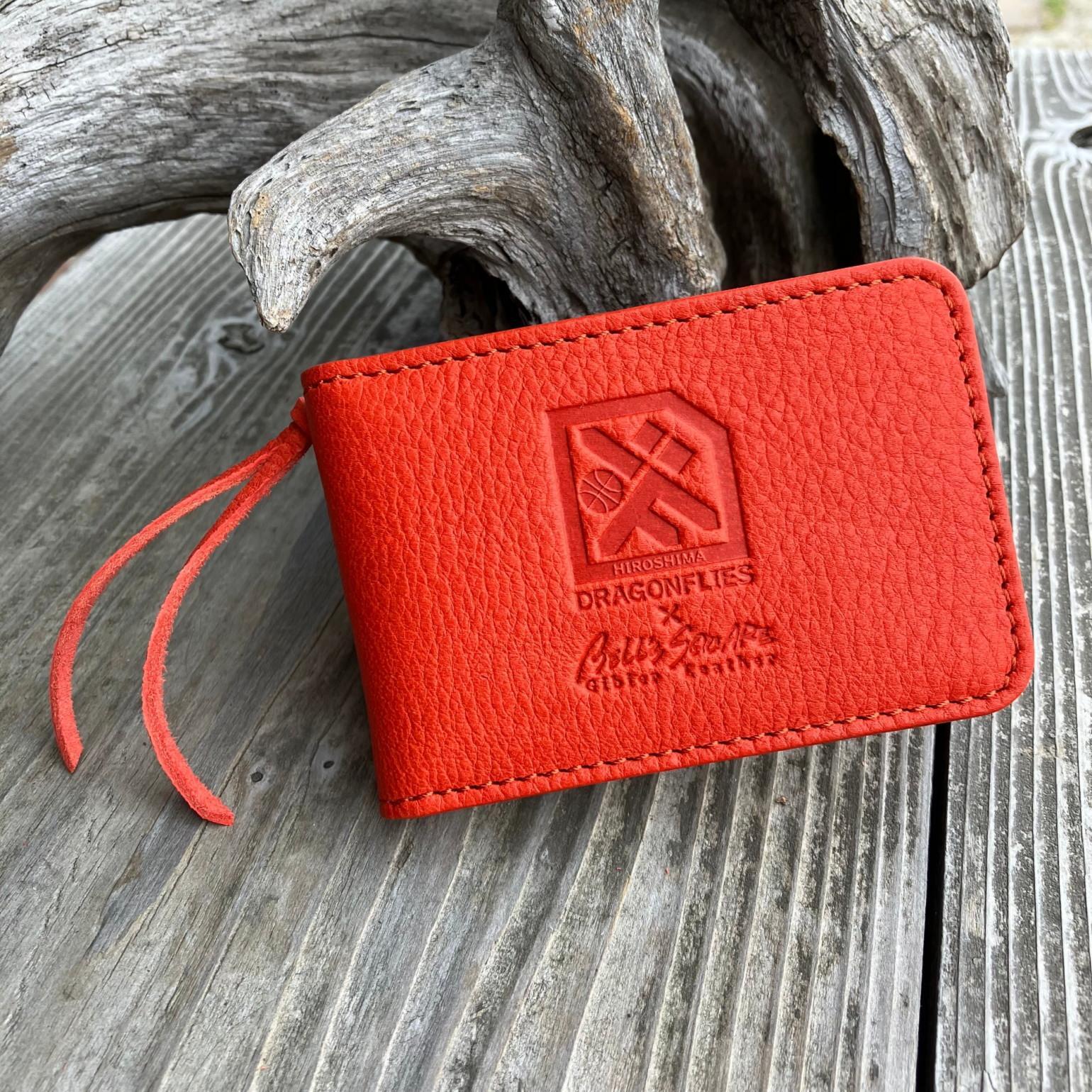 広島ジビエレザー×ドラゴンフライズコラボグッズ 鹿革二つ折りカードケース マイナンバーカードや免許書入れに最適 イニシャル刻印対応