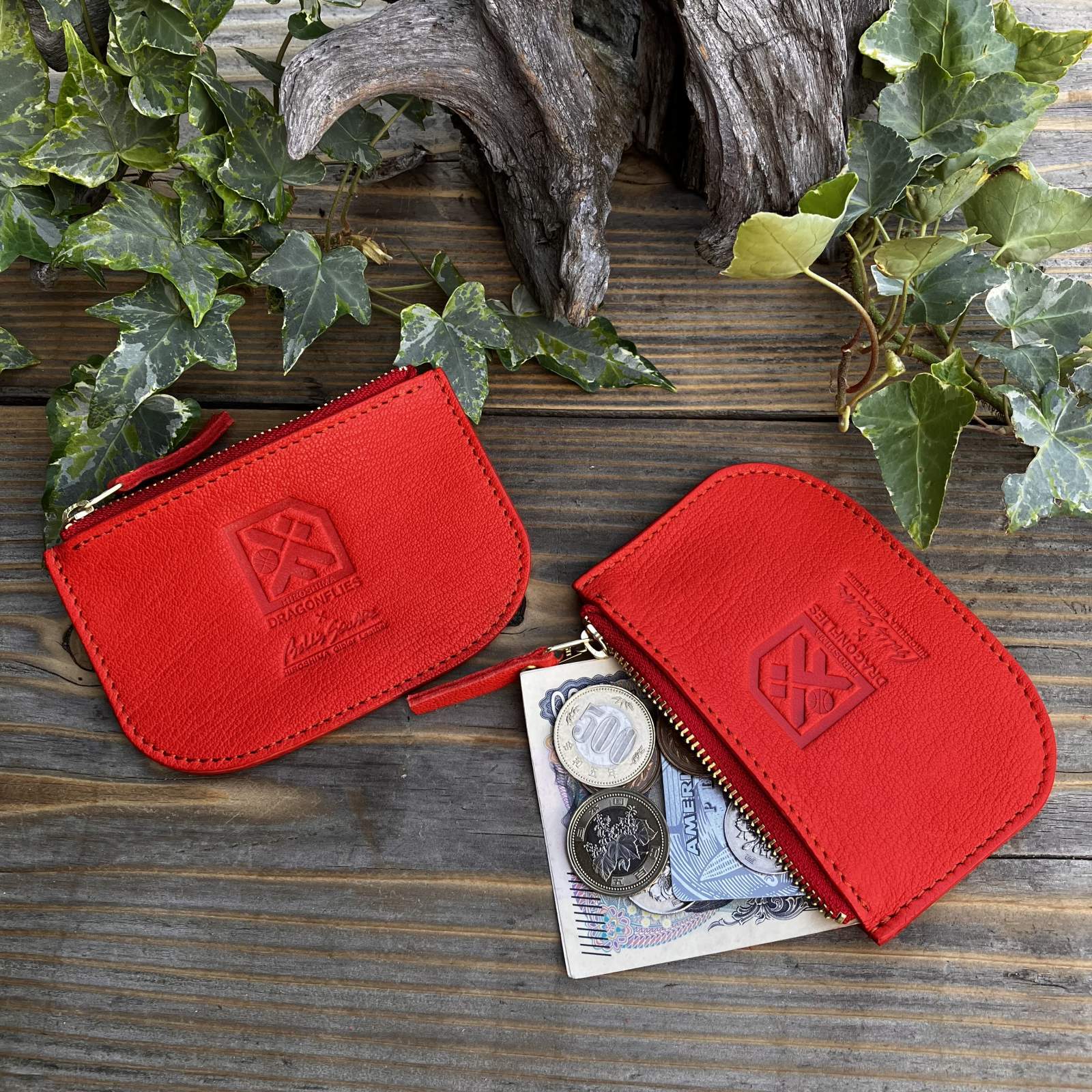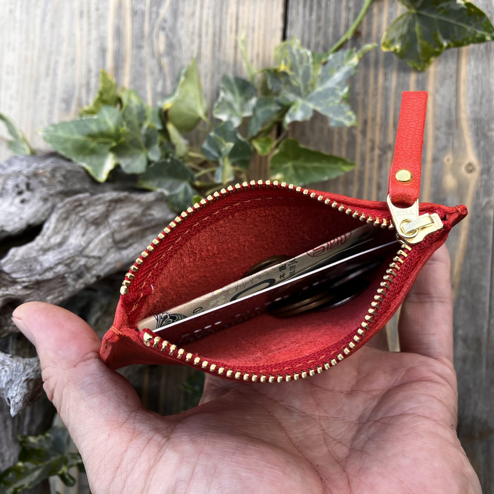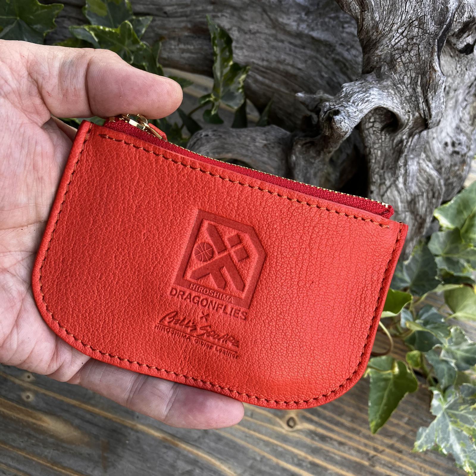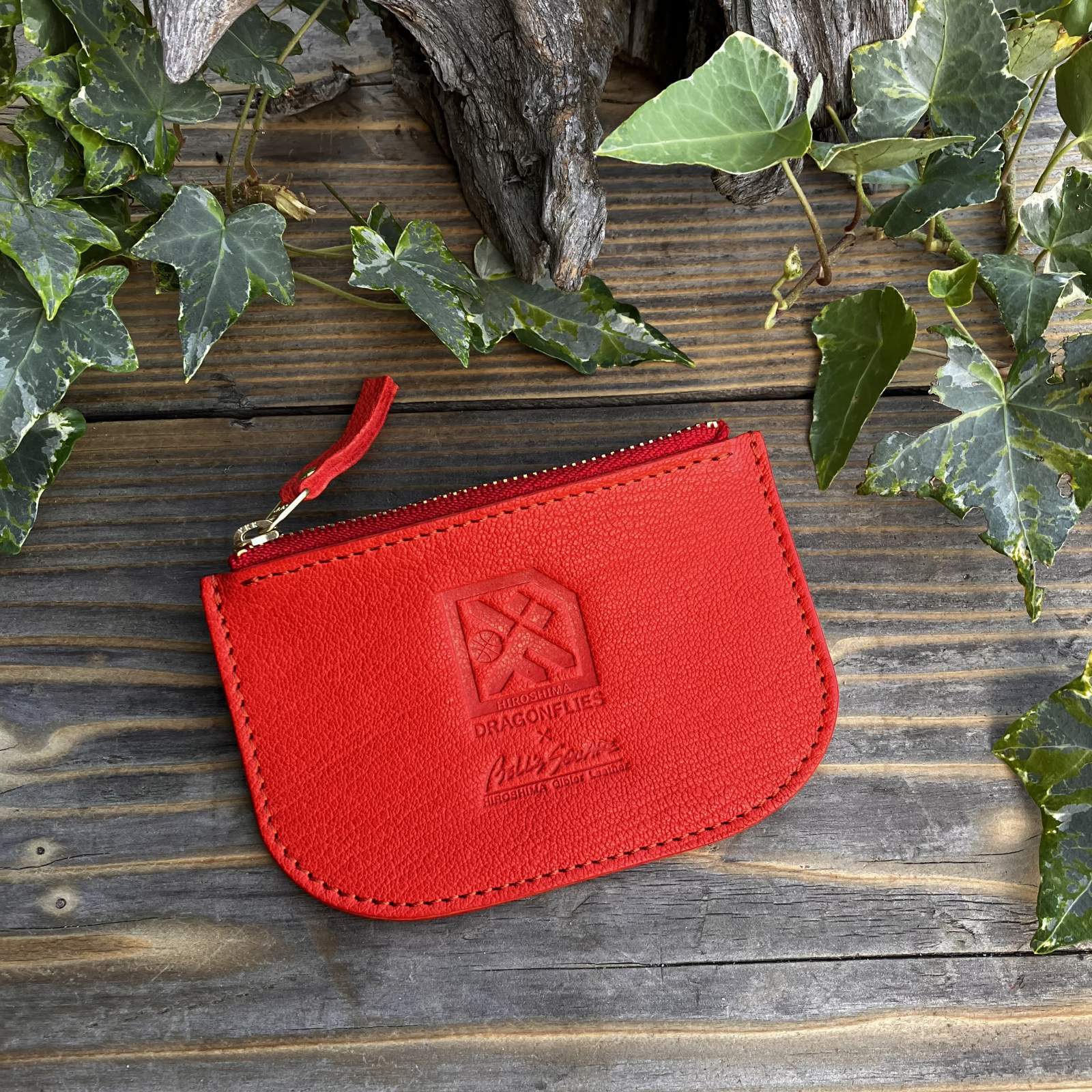 広島ジビエレザー×ドラゴンフライズコラボグッズ ジビエ鹿革のファスナーポーチ・小銭入れやお薬入れなどに イニシャル刻印対応