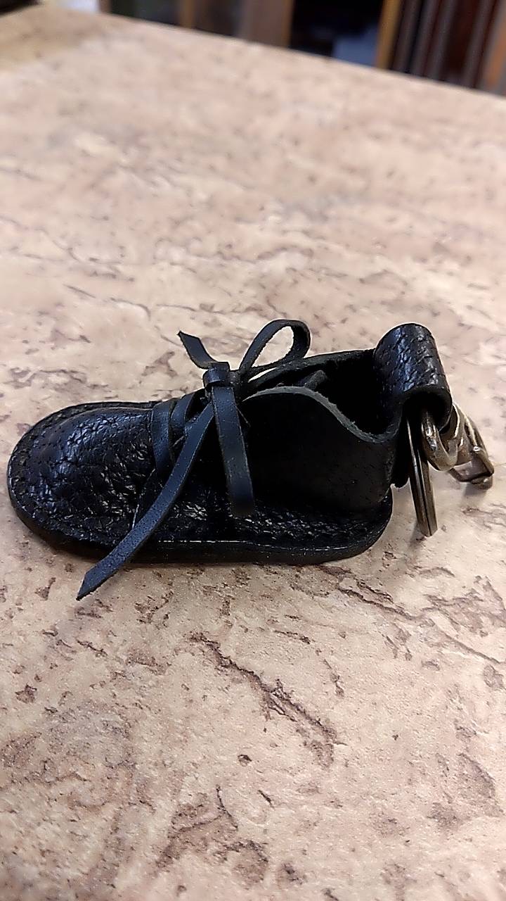 写真のヒグマの革で作ったスニーカーのキーホルダーです。