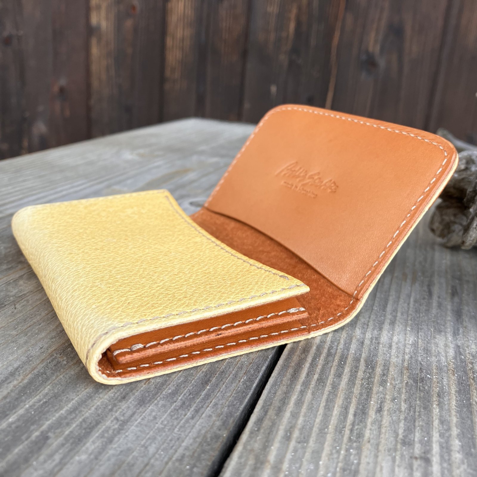 外装にツキノワグマの革を使用して製作した、縁起の良い名刺入れです。