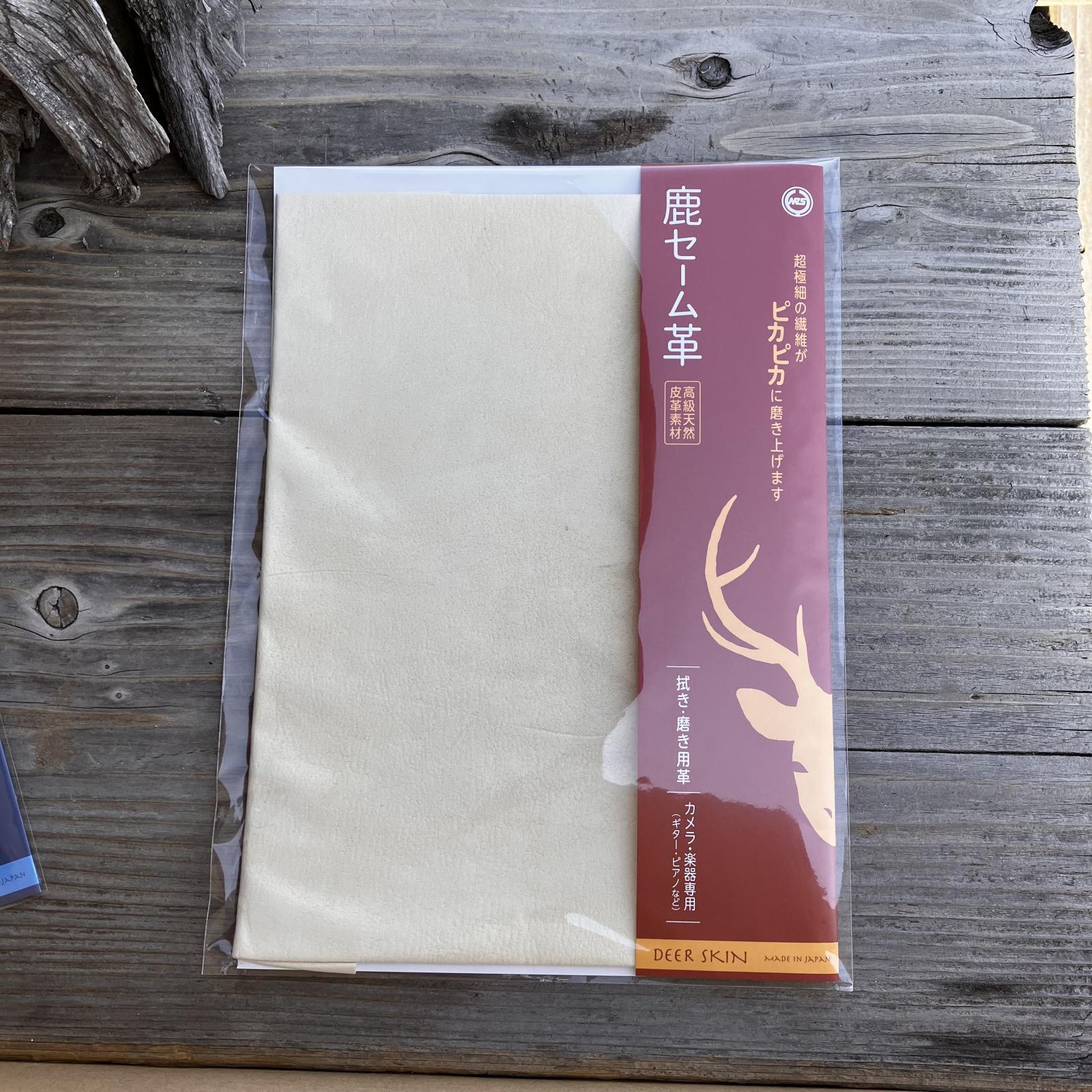 純鹿セーム革とは、鹿原皮をなめし加工したものを再度、鱈油でなめし(二次鞣し)を行ったもので、従来より、カメラやメガネ等のレンズ、時計や宝石等の貴金属類、ハサミ等の刃物類、自動車やガラスを磨くものとして広く使われてます。