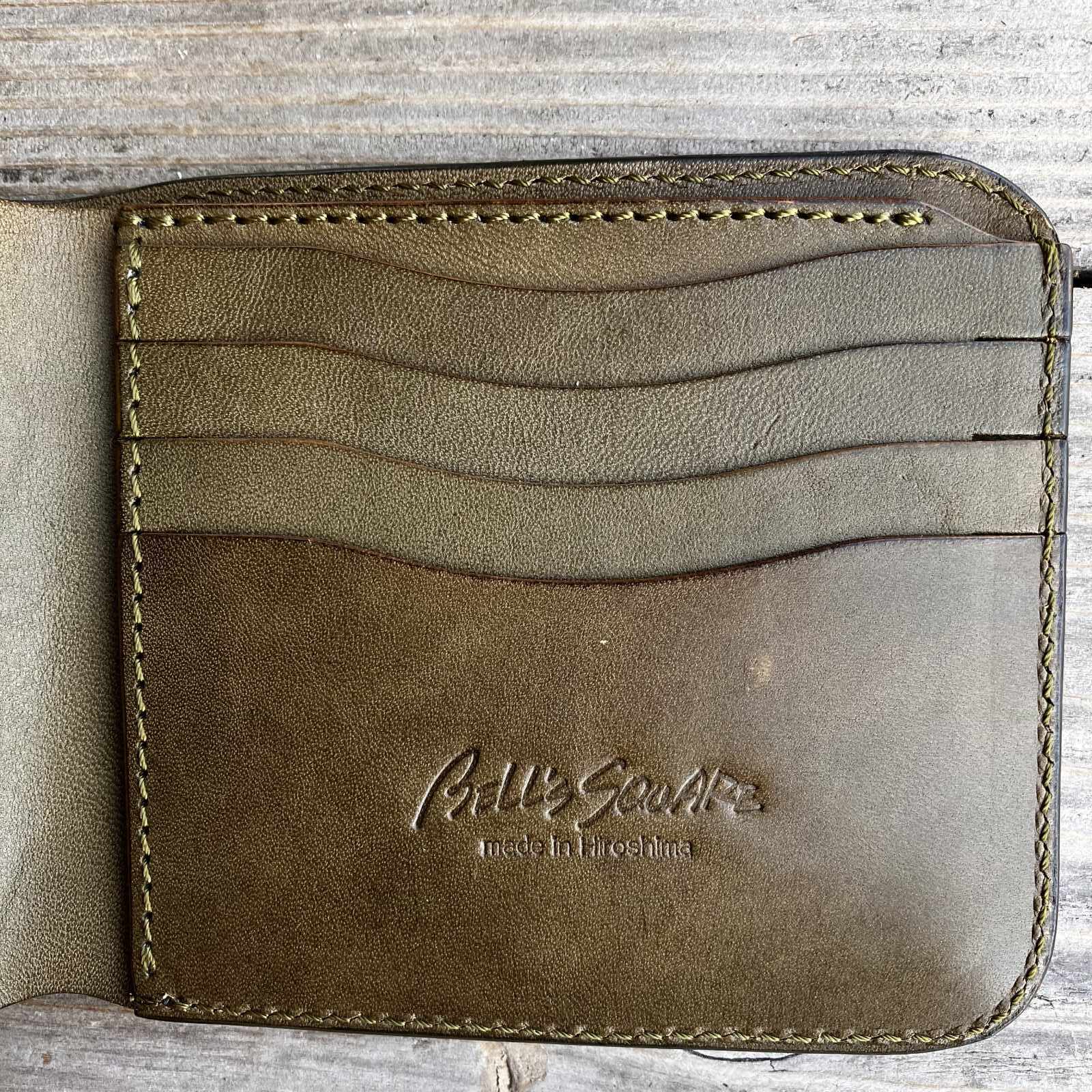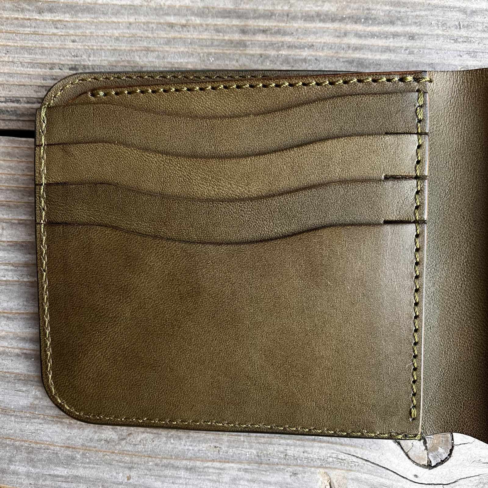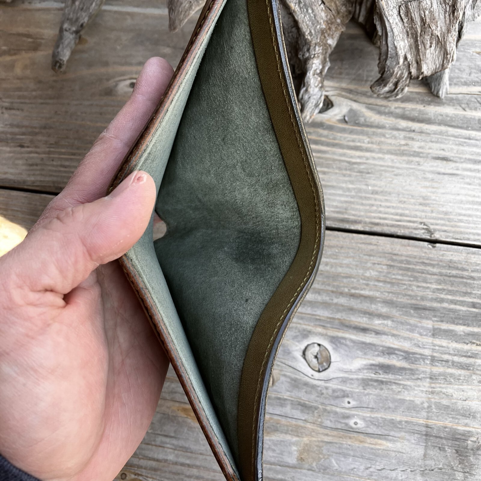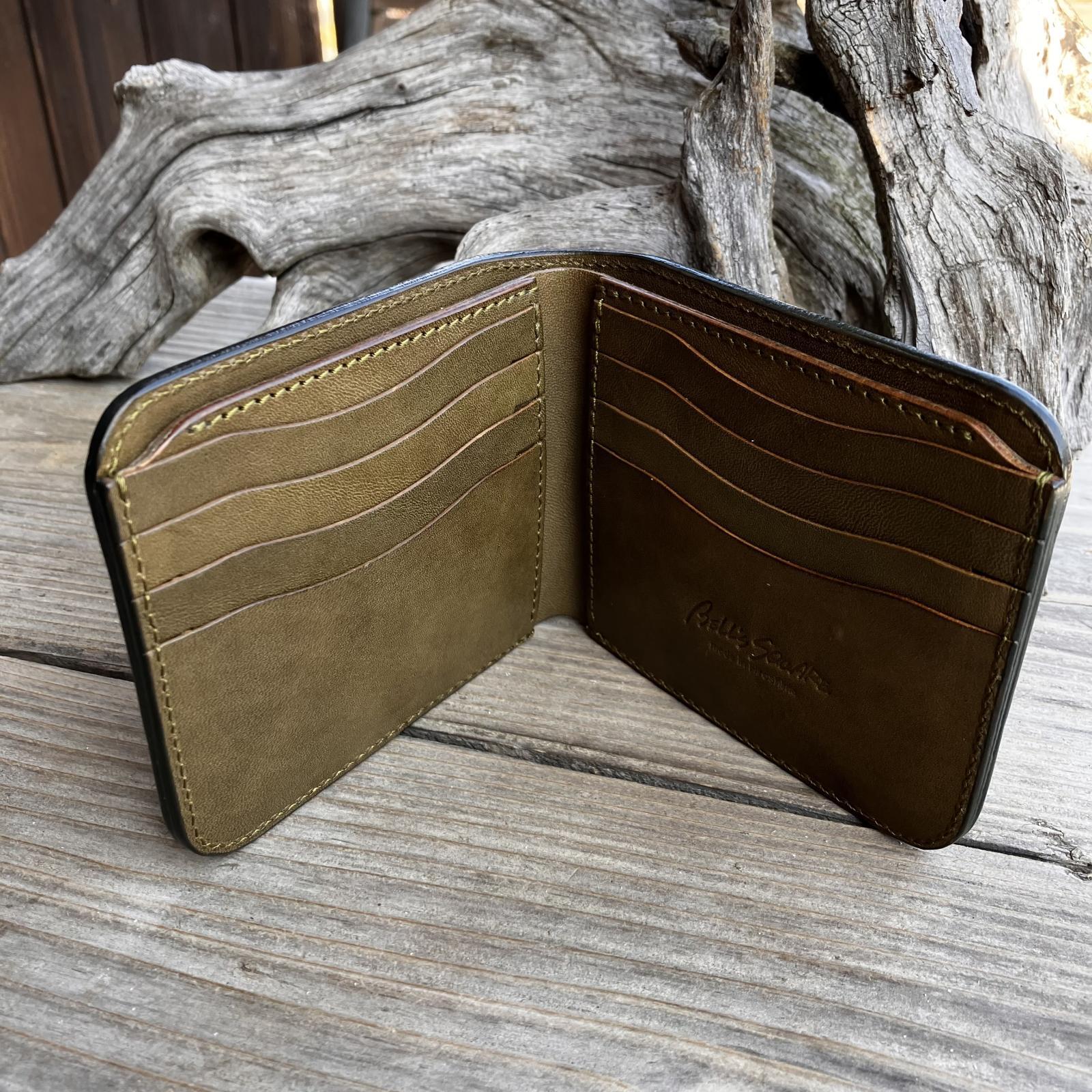 【一点限り/アウトレット】象革×姫路ヌメ革 二つ折り札入れカードケース|深緑×カーキの極上バランス