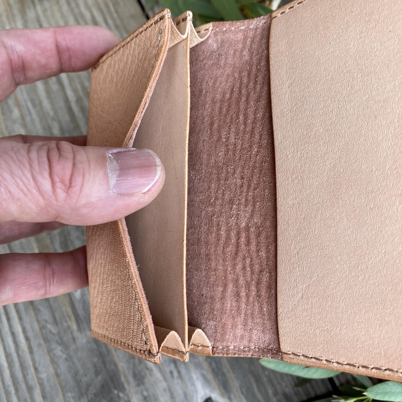 名刺入れとしての耐久性には一切問題ございません。ここからさらに深い色艶へと育て上げる楽しみが詰まっています。