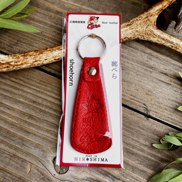 「広島ジビエレザー」の堅牢な質感と、野球ファンの心を揺さぶる色彩が融合した、実用美あふれる靴べらキーホルダーが誕生しました。
